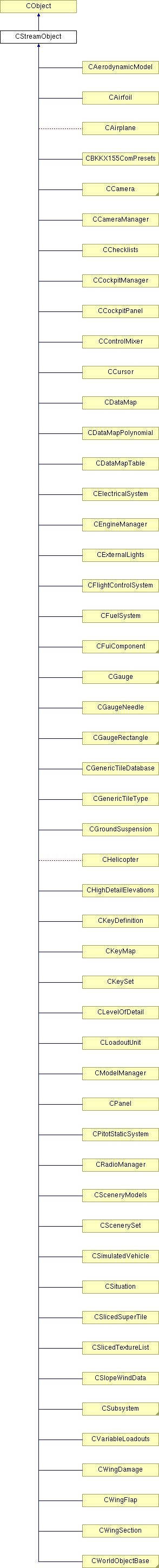 Reimplemented in CAirplane, CCamera, CCockpitPanel, CCameraCockpit, CCursor, CFuiComponent, CFuiPicture, CFuiButton, CFuiWindow, CFuiPopupMenu, CFuiCheckbox, CFuiRadioButton, CFuiLabel, CFuiLine, CFuiBox, CFuiSlider, CFuiGroupBox, CFuiList, CFuiTextField, CFuiGraph, CGaugeNeedle, CGaugeRectangle, CGaugeClickArea, CGaugeKnob, CGaugeAnnunciator, CGauge, CBitmapGauge, CNeedleGauge, CTwoNeedleGauge, CThreeNeedleGauge, CDigitalNeedleGauge, CAltimeterGauge, CRollingAltimeterGauge, CHorizonGauge, CFDHorizonGauge, CHorizontalBallGauge, CAirspeedGauge, CVerticalSpeedGauge, CDirectionalGyroGauge, CVacuumGauge, CSuctionGauge, CFuelGauge, CFuelFlowGauge, COilPressureGauge, COilTemperatureGauge, CTachometerGauge, CDualTachometerGauge, CN1TachometerGauge, CExhaustGasTemperatureGauge, CBasicCompassGauge, CAnalogClockGauge, CAmmeterGauge, CFlyhawkDigitalClockGauge, CBasicDigitalClockGauge, CBasicADFGauge, CDigitalReadoutGauge, CDigitsReadoutGauge, CCabinPressureRateKnobGauge, CCabinPressureGauge, CBrakePressureGauge, CAOANeedleGauge, CTurnCoordinatorGauge, CHSIGauge, CFlyhawkELTGauge, CSlipIndicatorGauge, CHobbsMeterGauge, CNavigationGauge, CBKKX155ComPresets, CBKNavComKX155Gauge, CBKGPSKLN89Gauge, CBKXPDRKT76Gauge, CBKADFKR87Gauge, CBKAP140Gauge, CBKKFC200Gauge, CBKKFC150Gauge, CBKAudioKMA26Gauge, CGenericNavRadioGauge, CGenericCommRadioGauge, CGenericTransponderGauge, CGenericADFRadioGauge, CRMINeedleGauge, CNavGaugeGroup, CRadioGaugeGroup, CAnnunciator, CFlyhawkAnnunciator, CFlyhawkAnnunciatorTest, CFlyhawkNavGpsPanelGauge, CFlyhawkFuelSelectorGauge, CFlyhawkElevatorTrimGauge, CMalybooCHTIndicatorGauge, CMalybooCHTButtonGauge, CMalybooNavGpsPanelGauge, CMalybooDigitalClockGauge, CMalybooEngineMonitorGauge, CNavajoFuelSelectorGauge, CNavajoAmmeterGauge, CNavajoRadarAltimeterGauge, CCollinsEFISSelectionGauge, CCollinsVspeedPanel, CCollinsHFRadioGauge, CCollinsPFDGauge, CCollinsNDGauge, CCollinsRTUGauge, CCollinsAirDataGauge, CCollinsMNDGauge, CUniversalFMSGauge, CPilatusEFISPanel, CWalkerTempAirspeedGauge, CGyroSlavingGauge, CVerticalRateGauge, CPropSyncGauge, CDMEGauge, CDME2Gauge, CWeatherRadarGauge, CAnalogAltPreselectGauge, CMomentaryHotSpotGauge, CSimpleInOutStateSwitch, CLitInOutSwitch, CSimpleSwitch, CBasicBatterySwitch, CTwoStateELTGauge, CSwitchPairGauge, CSimpleFloatSwitch, CDualSwitch, CPushPullKnobGauge, CPrimerKnobGauge, CFlapsSwitchGauge, CLitLandingGearKnobGauge, CMixtureKnobGauge, CReversibleThrottleKnobGauge, CDualKnobGauge, CFlyhawkLightKnobGauge, CTurnKnobGauge, CCoveredSwitch, CCoveredLightButtonGauge, CVerticalSliderGauge, CTrimWheelGauge, CTrimWheelIndicatorGauge, CIndicatorGauge, CFlapsIndicatorGauge, CPushButtonGauge, CLightButtonGauge, CTurnSwitchGauge, CMasterCautionWarningButtonGauge, CKAFireExtinguisherButton, CWalkerAPPanel, CWalkerFirePanel, CLightSwitchSetGauge, CRockerSwitch, CKeyDefinition, CKeySet, CKeyMap, CPanel, CSituation, CSubsystem, CDependent, CGenericMonitor, CGenericIndicator, CPneumaticPump, CEmergencyLocator, CExteriorLight, CPitotStaticSwitch, CAnnunciatorLight, CStallWarning, CLightSettingState, CSwitchSet, CBattery, CAlternator, CPitotStaticSubsystem, CAltimeter, CVerticalSpeedIndicator, CAirspeedIndicator, CPneumaticSubsystem, CAttitudeIndicator, CDirectionalGyro, CVacuumIndicator, CTurnCoordinator, CBKKAP140Panel, CAmmeter, CEngineSubsystem, COilPressure, CBaseControl, CMixtureControl, CFlapControl, CRadio, CNavRadio, CTransponderRadio, CADFRadio, CBKKT76Radio, CBKKLN89GPSRadio, CFuelSubsystem, CFuelTap, CFuelCell, CFuelHeater, CFuelMath, CFuelPump, CFuelSource, CFuelTank, CEngineFuelPump, CFuelManagement, CAPUFuelSource, CPitotStaticPort, CGenericTileType, CGenericTileDatabase, CScenerySet, CSlicedTextureList, CHighDetailElevations, CSlicedSuperTile, CSceneryModels, CSimulatedVehicle, CFuelSystem, CAirfoil, CWingFlap, CWingDamage, CWingSection, CAerodynamicModel, CElectricalSystem, CPitotStaticSystem, CGroundSuspension, CLoadoutUnit, CVariableLoadouts, CCockpitManager, CCameraManager, CLevelOfDetail, CRadioManager, CExternalLights, CEngineManager, CControlMixer, CChecklists, CFlightControlSystem, CSlopeWindData, CHelicopter, CDataMap, CWorldObject, CModelManager, CModelObject, CSimulatedObject, CVehicleObject, CGroundVehicleObject, CAirplaneObject, CHelicopterObject, CDataMapPolynomial, and CDataMapTable.